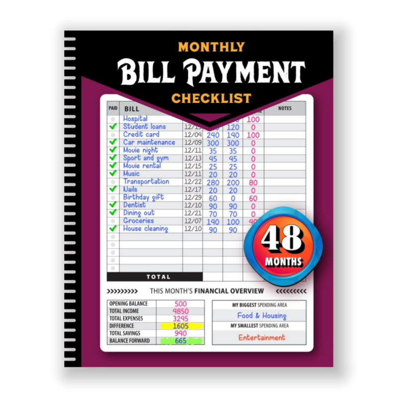 Monthly Bill Payment Checklist,The 4 Year For Families & 960 Billing Records