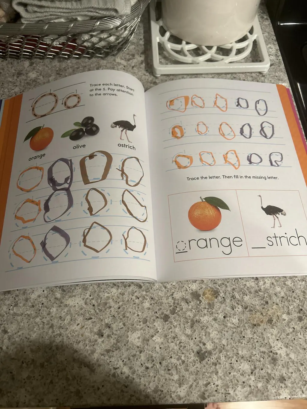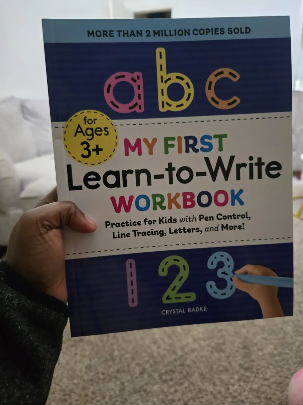 A colorful workbook that helps kids learn to write letters, numbers, and shapes through fun practice.